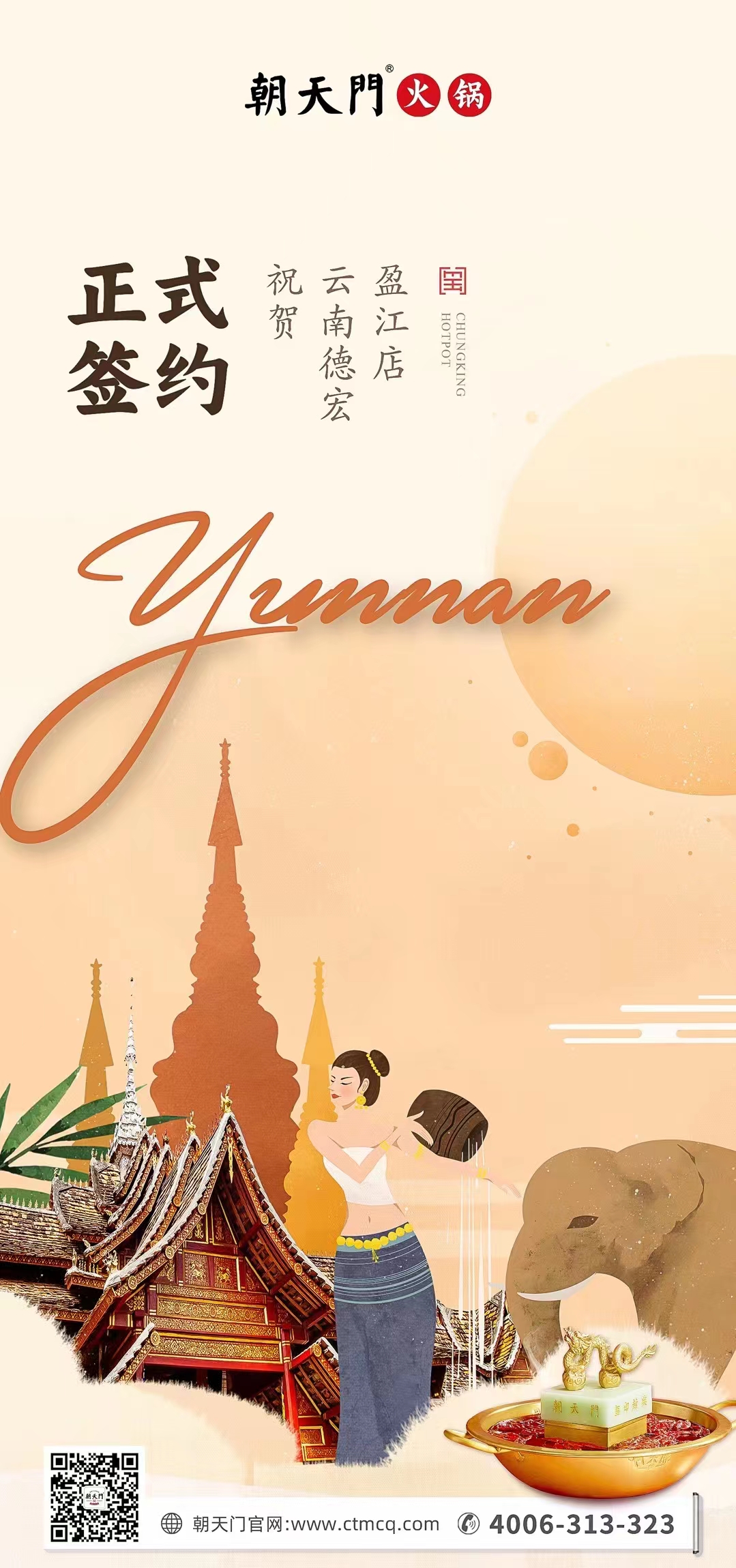 同時,非常感謝云南德宏盈江店洪總,選擇加入朝天門這個有溫度有力度的大家庭,我們相信,這不僅是洪總對重慶地道火鍋的厚愛,更是對朝天門品牌的信任與支持,朝天門火鍋勢必在云南餐飲市場大展宏圖,也提前預祝洪總生意興隆,財源廣進!