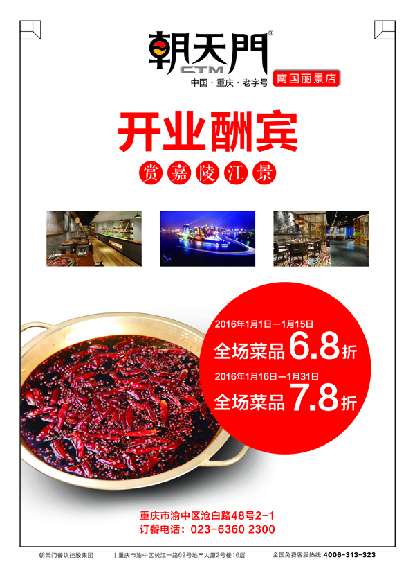 朝天門火鍋南國麗景店開業(yè)邀您賞嘉陵江夜景