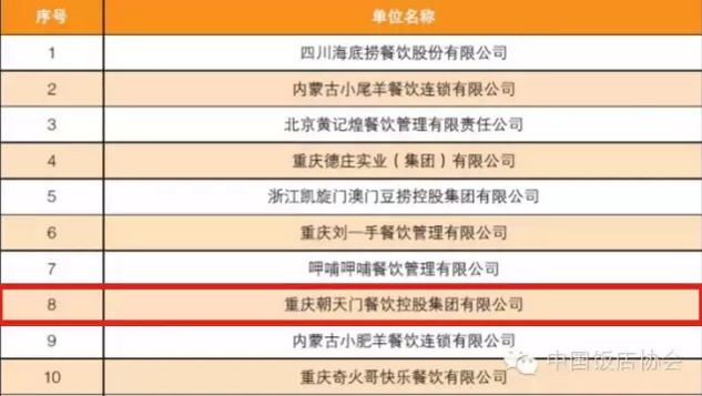 朝天門榮獲2015年度中國百強(qiáng)火鍋餐飲集團(tuán)第八名